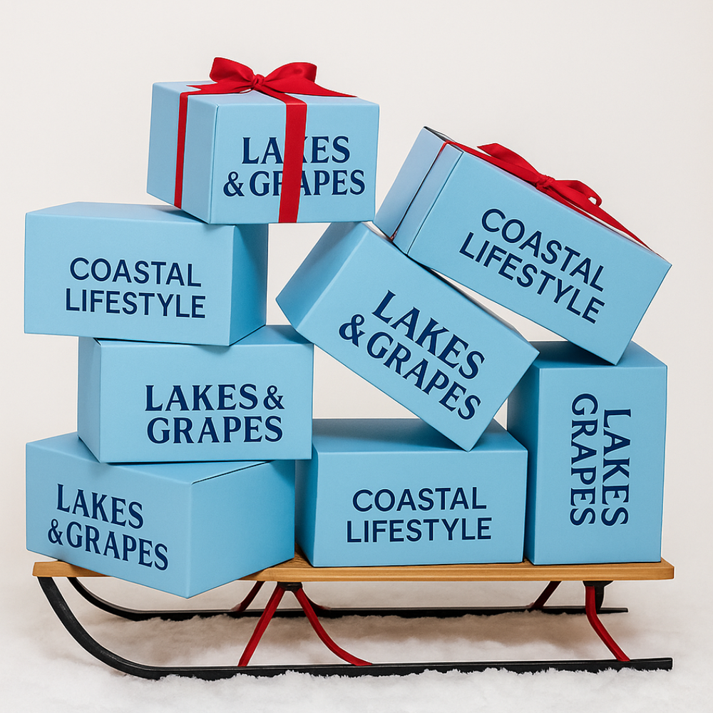 For every $100 you spend this holiday season, you’ll receive a $20 Lakes & Grapes Gift Card to shop with in the New Year — January through March. Our way of saying thank you for supporting local. Gift Cards will be delivered via e-gift card to the email you place your order with.
